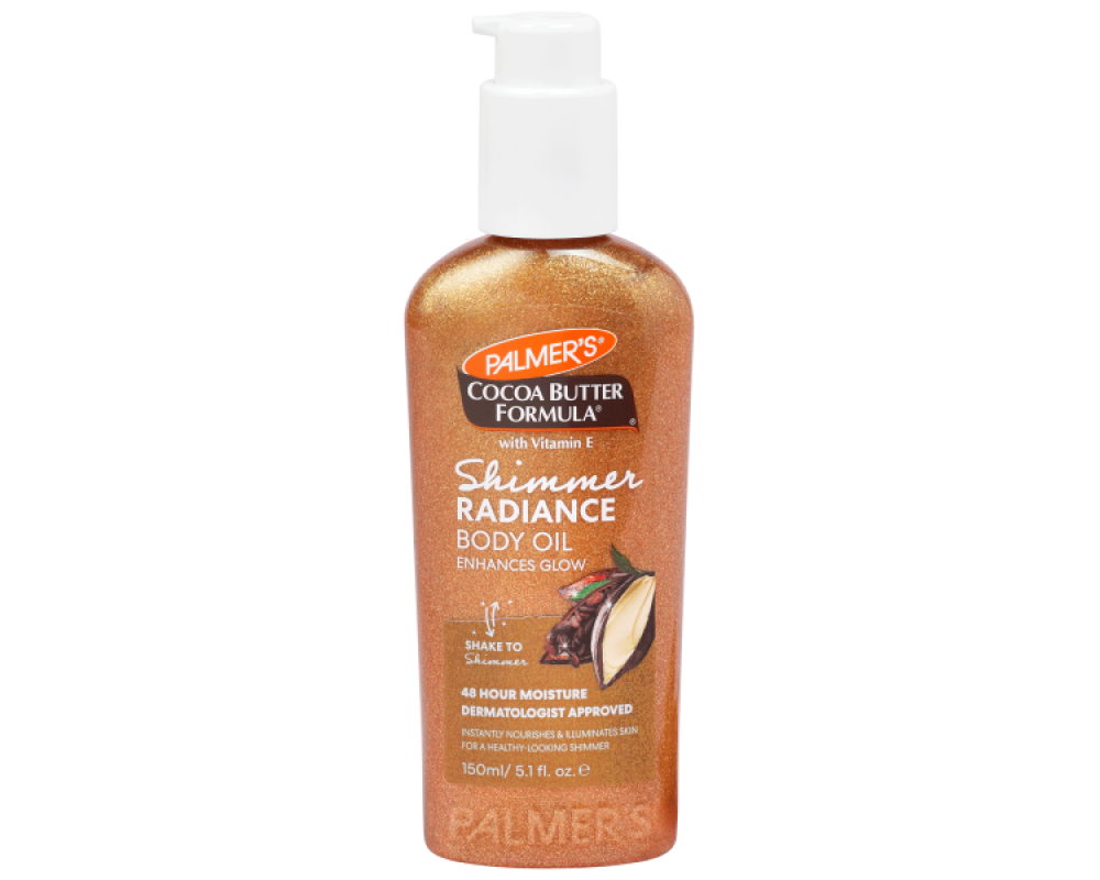 Блестяща и сияйна кожа с олио за тяло Palmer’s с интензивно и подхранващо какаово масло осигуряващо 48 часова хидратация и нежни блестящи частици , които придават разкошно сияние и нежен блясък върху кожата.