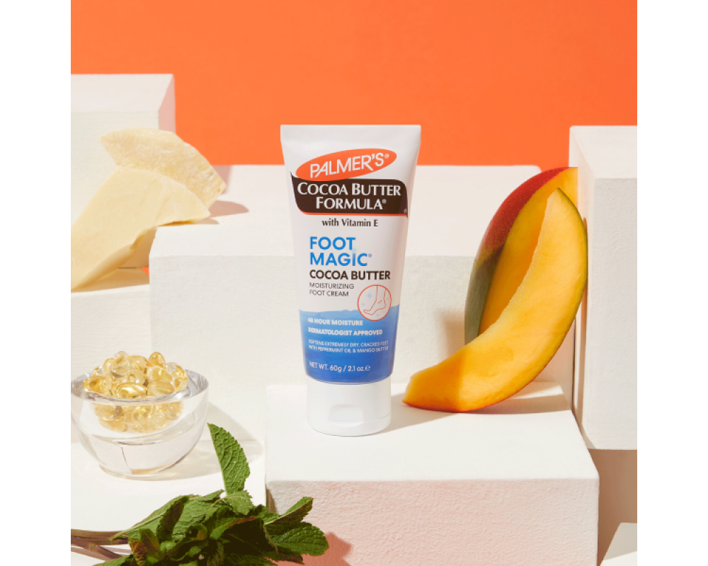Уникална формула от чисто какаово масло обогатено с витамин Е и естесвени емолиенти, комбинирани с цел дълбоко подхранване и хидратиране дори на най-сухата и груба кожа в областа на петите. Тази уникална формула овлажнява и омекотява грубата кожа. Успокояващото масло от мента и масло от манго спомагат за възстановяването на напуканите участъци, още с първото нанасяне кожата става мека и копринено гладка. Особено ефективен, когато се прилага вечер. Крема може да бъде използван като маска, след нанасяне обуйте памучни чорапи.